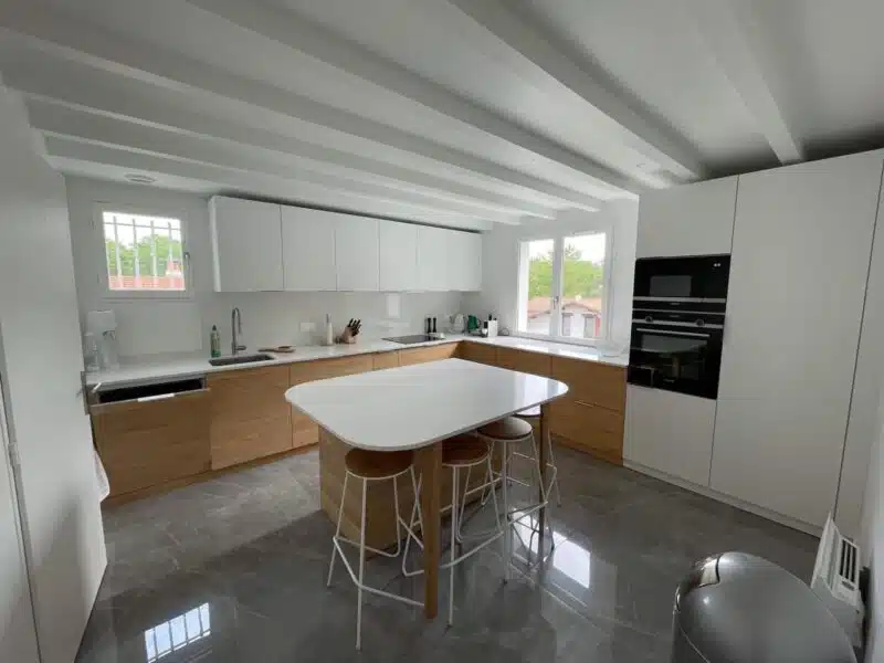 Création d’une cuisine sur mesure, pensée comme un lieu de vie central, alliant ergonomie et design.